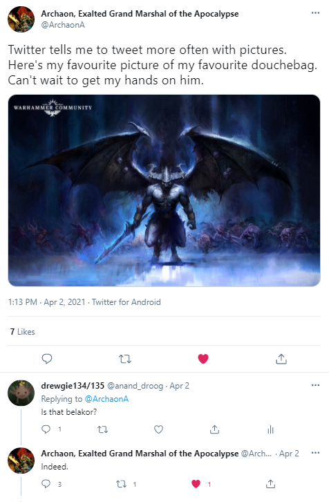 But now they're caught between Archaon's hammer and the anvil of legit Belegurth (the true Be'lakor) on earth.